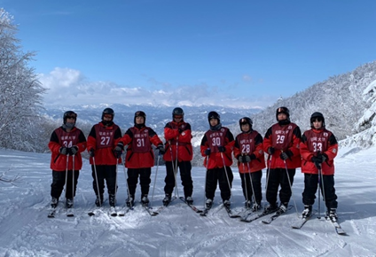 今年度は、スポーツ科学部の学生約 120名、一般学部約60名で 4 泊 5 日のスキー実習が行われました。現地では、良質な雪・天候に恵まれ、実習を開始することができました。学生たちも見慣れない雪景色に感動している様子でした。